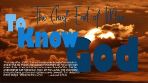 Here is wise counsel from Jeremiah 9:23-24 which expands on how this purpose plays out in the believer’s life: “Thus says the LORD, “Let not a wise man boast of his wisdom, and let not the mighty man boast of his might, let not a rich man boast of his riches; but let him who boasts boast of this, that he understands and knows Me, that I am the LORD who exercises lovingkindness, justice and righteousness on earth; for I delight in these things,” declares the LORD.