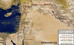• The total trip from Ur began by following ancient trading routes along the Euphrates river.  They traveled 600 miles from Ur to Haran.  Then after Terah died, Abram and his family traveled another 400 miles down to Canaan.  Also note Abram’s later sojourn down to Egypt because of famine (Gen. 12:10-20), which was another 300 miles round trip.  Those camels were probably getting worn out.